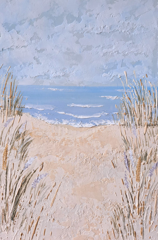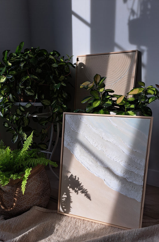 Textured Beach Waves Canvas Art in Custom Wood Frame