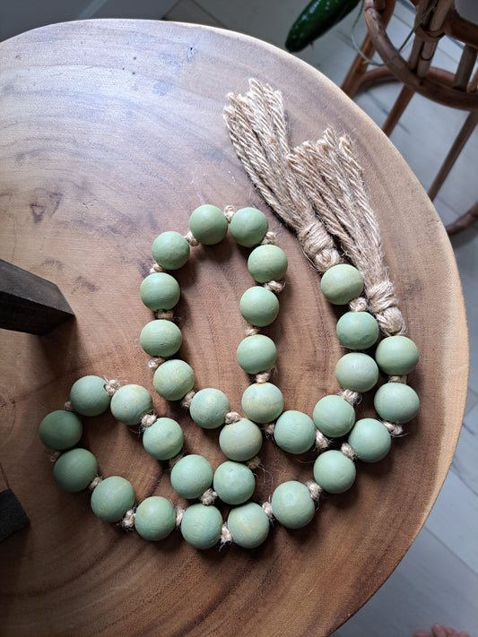 Natural Wood and Sage Green Bead Jute Garland