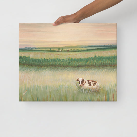 Cow at Sunset Canvas Print